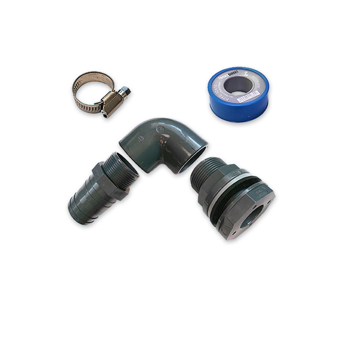 PVC Tankanschluss Set gewinkelt 90° für 50 mm Schlauch