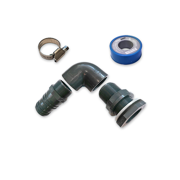 PVC Tankanschluss Set gewinkelt 90° für 63 mm Schlauch